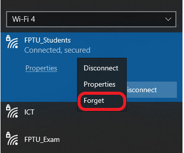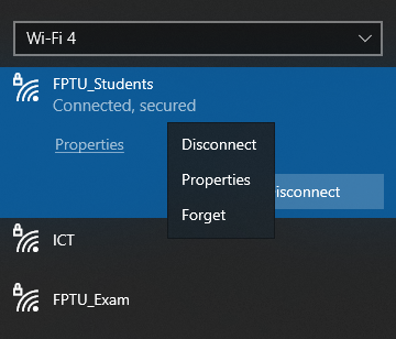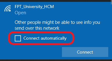 - Sinh viên khi tham gia kì thi và làm kiểm tra chỉ có thể đăng nhập Wifi FPTU_Exam, các Wifi khác cần phải tắt chế độ tự động cập nhật. / - Students attending exams can only connect to the Wi-Fi "FPTU_Exam". Other Wi-Fi networks need to have the automatic connect feature disabled.