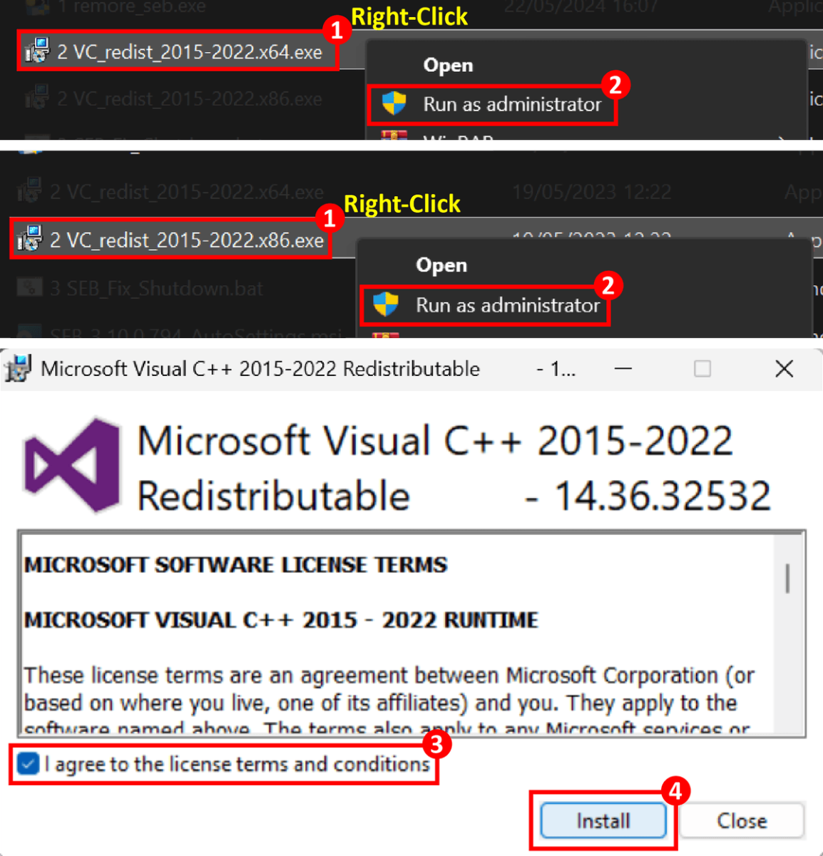 Repeat the same steps with VC_redist_2015–2022.x86.exe.