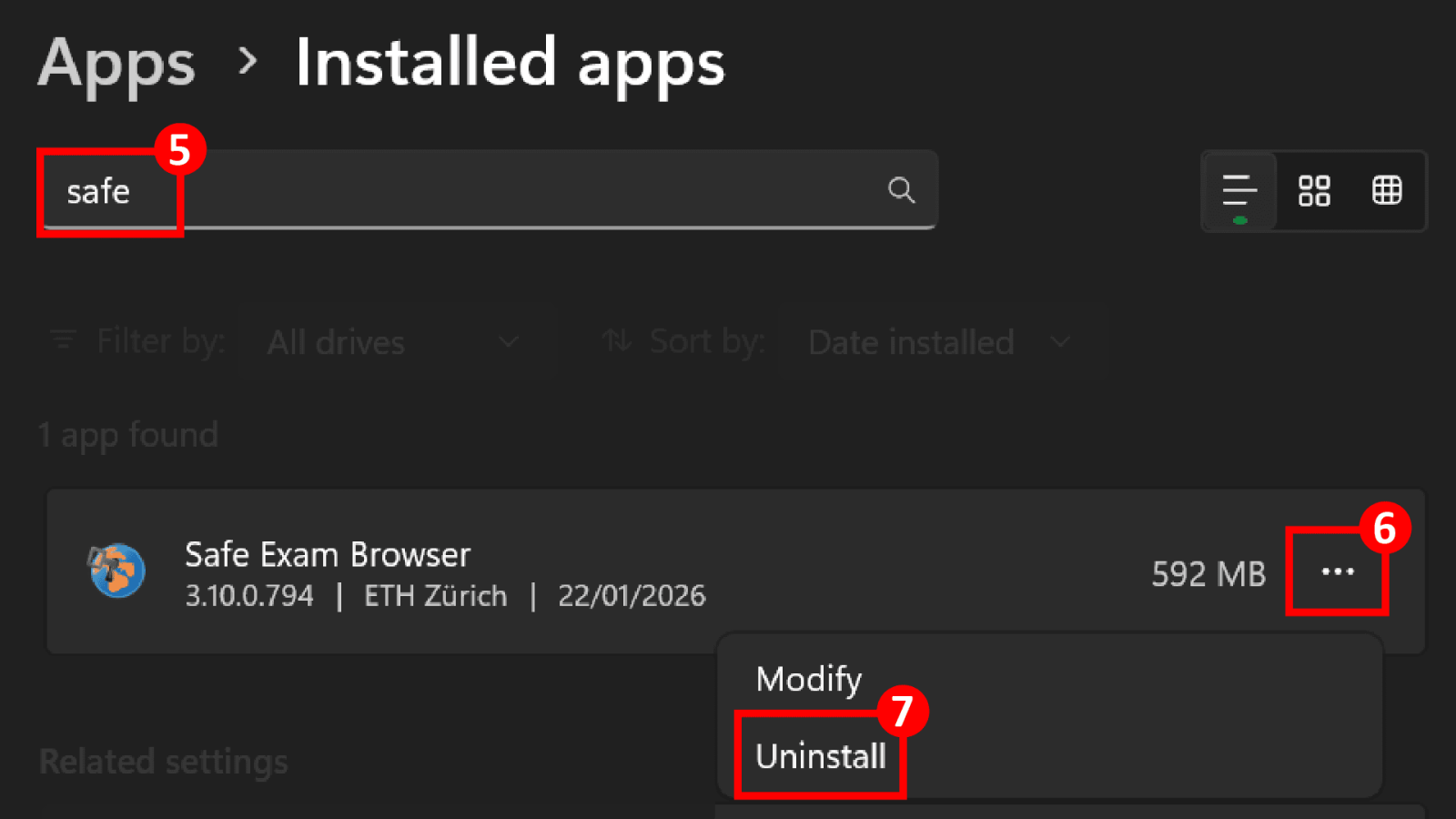 Part 1: Uninstall Safe Exam Browser via Windows Settings