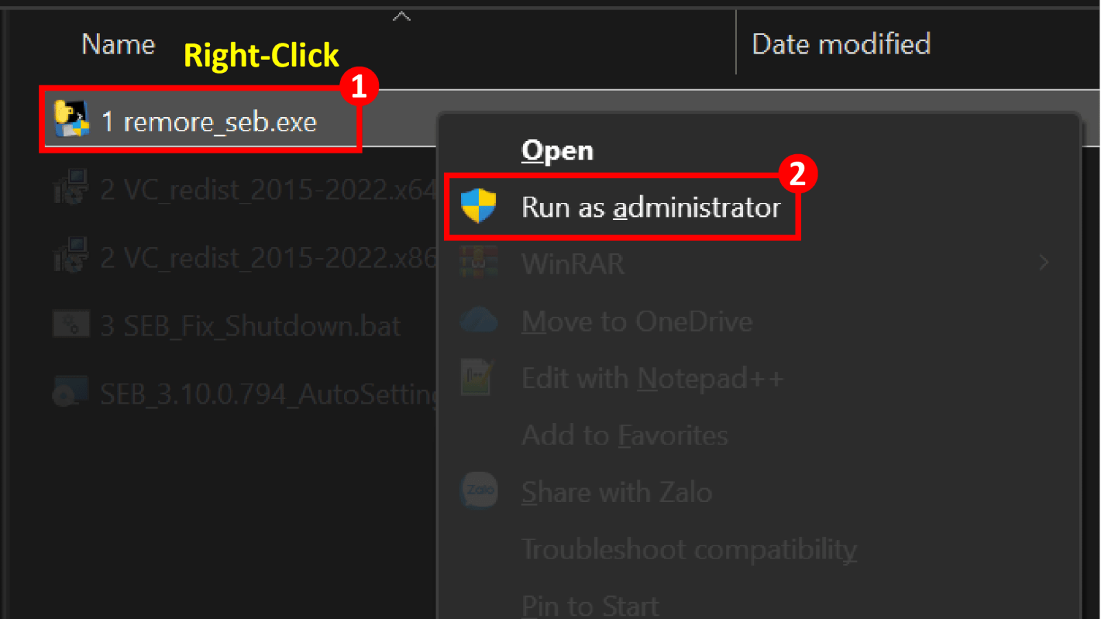 Right-click SEB_Fix_Shutdown.bat and select Run as administrator.