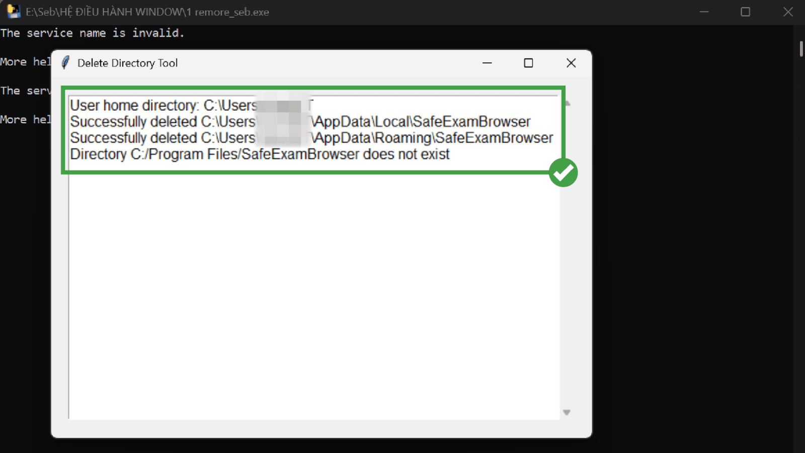 • Bước 3: Công cụ sẽ tự động kiểm tra và xoá các thư mục liên quan đến Safe Exam Browser trong hồ sơ người dùng.