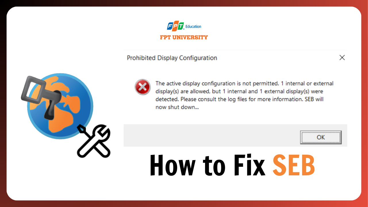 Hướng dẫn sửa lỗi Safe Exam Browser (SEB) – Prohibited Display Configuration